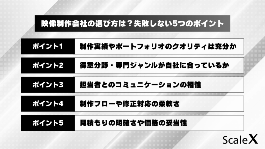 - 映像制作会社を選ぶ際の5つの重要ポイント
